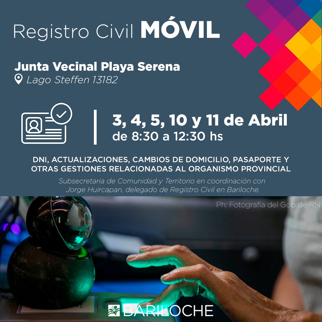 Con el objetivo de descentralizar las oficinas del estado y acercarlas a los barrios, es que la Municipalidad de San Carlos de Bariloche, y a través de la Subsecretaría de Comunidad y Territorio, la Lic. Bárbara Vilosio en conjunto con el Registro Civil de las Personas de la provincia de Río Negro, a través de su delegado zonal Jorge Huircapán, continúan con la iniciativa del Registro Civil itinerante y su recorrido por la ciudad.
