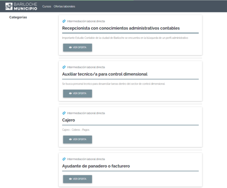 Con esta nueva herramienta, finalizó la virtualización del circuito de servicios para personas en Búsqueda de Empleo y Formación. A través de este Portal Web municipal se gestionan, perfiles laborales, ofertas de capacitación y ofertas de empleo.